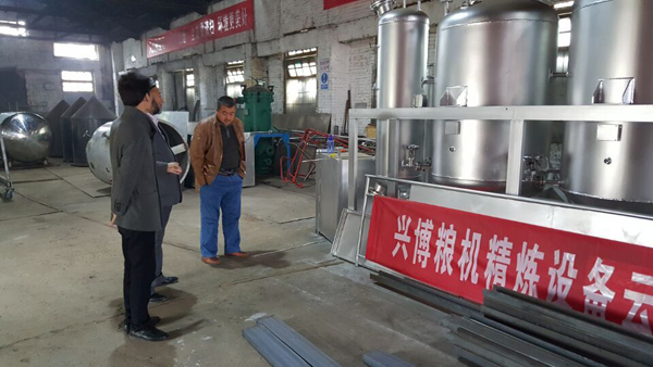 精炼油设备多少钱?新疆维吾尔自治区客户亲临我厂实地考察参观