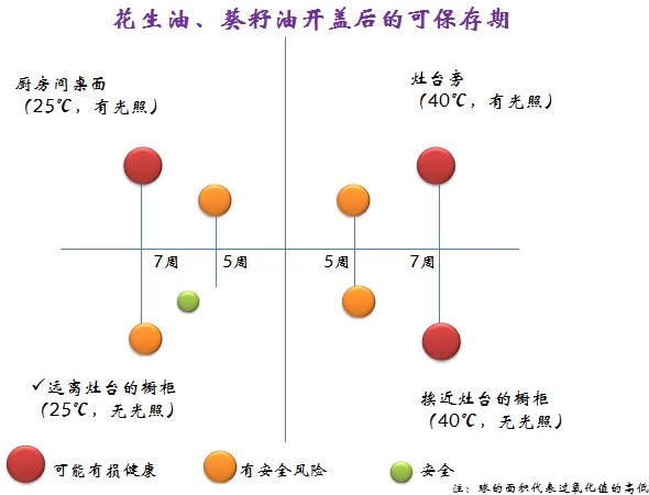 因此,对于葵花籽油和花生油要同时注意避光和低温保存。
